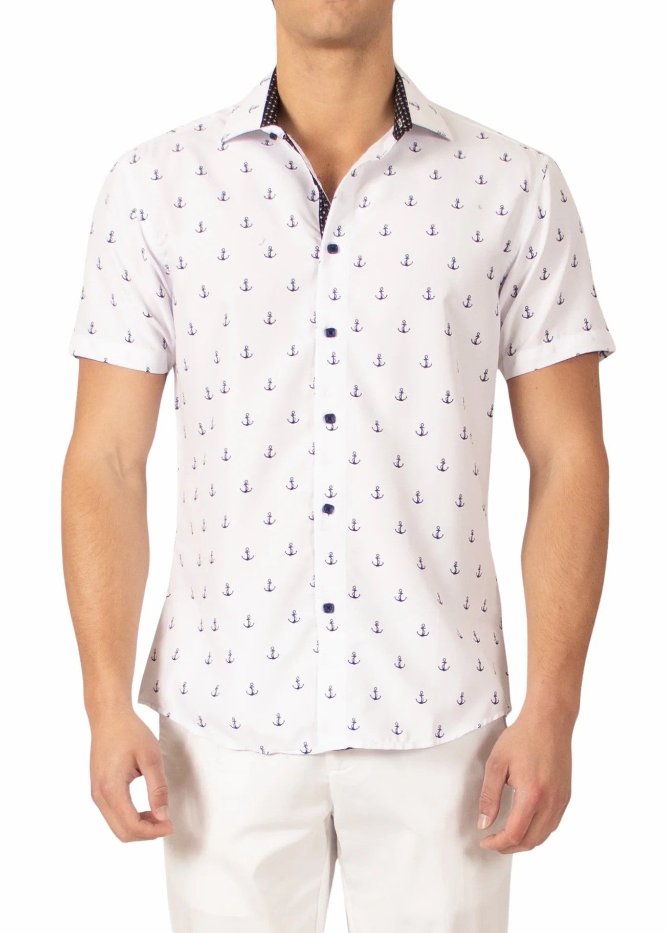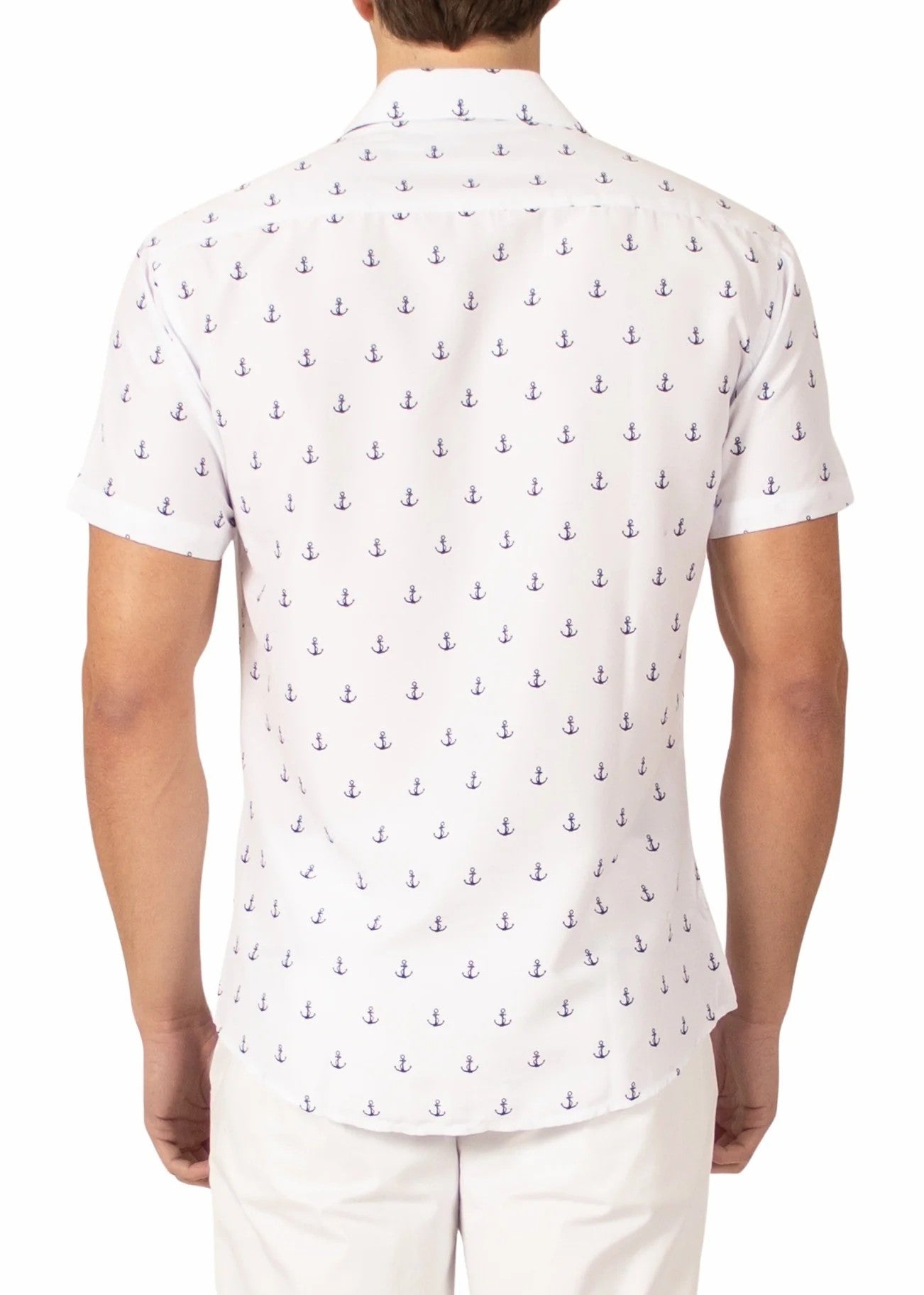 White Button Up Short Sleeve Shirt Nautical Anchor