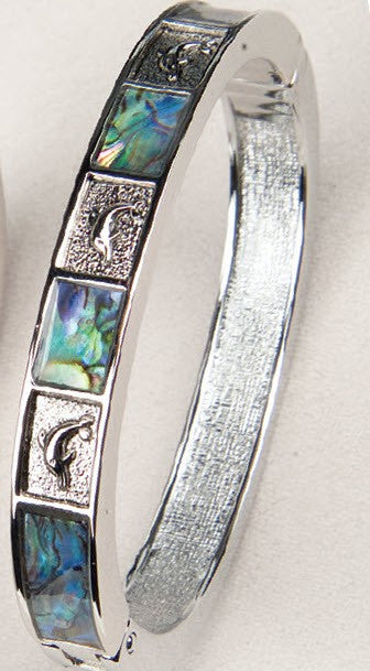 Wild Pearle Abalone Bangle Bracelet Dolphin - Hinged