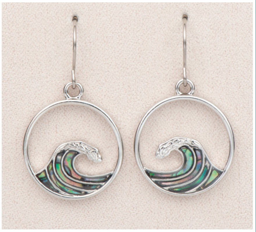 Wild Pearle Abalone Earrings showcase the natural iridescence of premium abalone shell, capturing the dynamic movement of ocean waves in their design. Each pair features hand-selected abalone with distinctive color gradations—blues, greens, and purples—that shift with light. The cresting wave motif reflects coastal elegance, making these earrings a sophisticated choice for those who appreciate ocean-inspired jewelry. Lightweight and durable, they're ideal for everyday wear or special occasions.