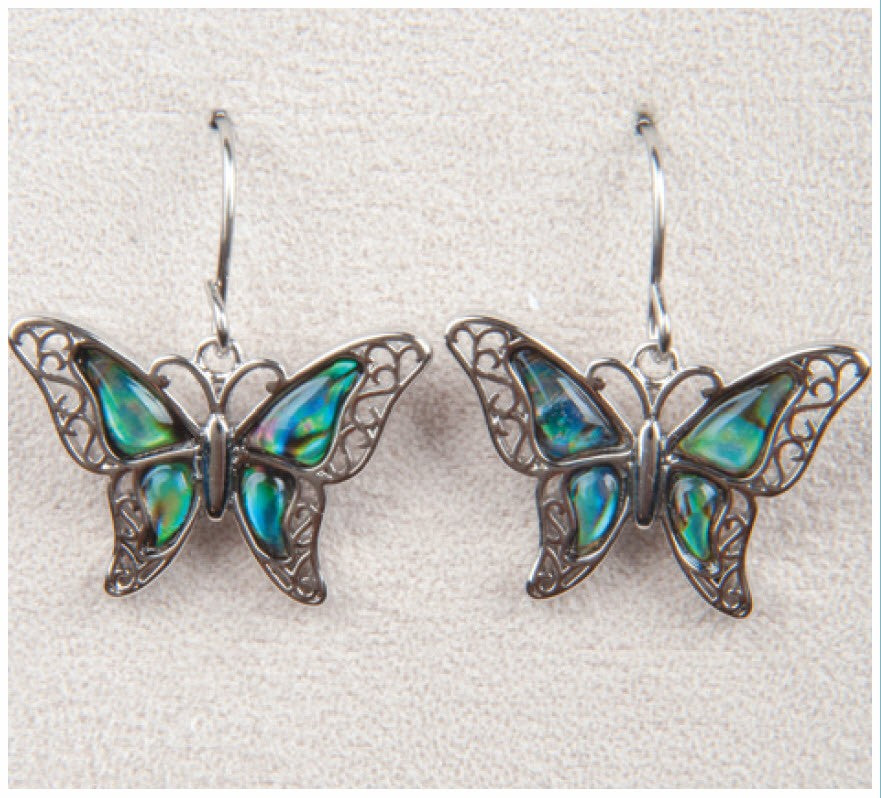 Wild Pearle Abalone Earrings Filigree Butterfly
