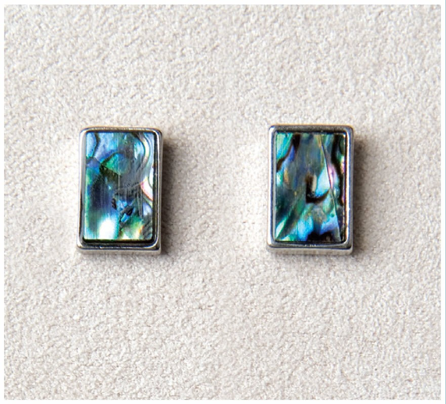 Wild Pearle Abalone Earrings Rectangle showcase the natural iridescence of premium abalone shell, featuring a distinctive rectangular cut that catches light with every movement. Each pair displays unique color variations—from deep blues and greens to shimmering purples and golds—making them truly one-of-a-kind pieces. The smooth, polished surface highlights the shell's organic beauty while the geometric shape offers a modern aesthetic that complements both casual and refined styles. Lightweight and comfortable for all-day wear, these earrings bring coastal elegance and sophisticated flair to any wardrobe.