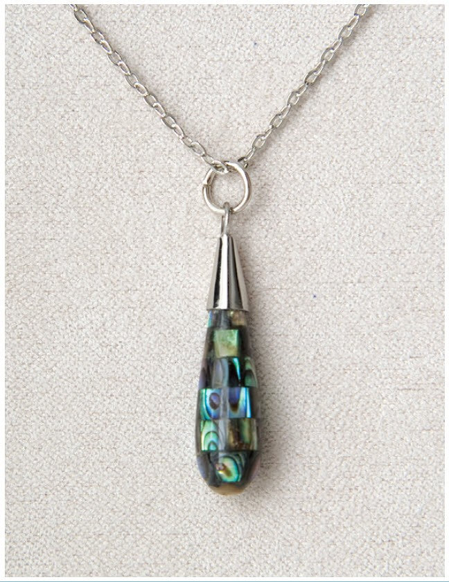 This elegant abalone necklace showcases the natural iridescence of Wild Pearle's signature shell work. The simplicity of the design allows the luminous, color-shifting qualities of the abalone to take center stage, creating a versatile piece that complements any wardrobe. Crafted with attention to detail, this necklace offers understated sophistication for those who appreciate authentic gemstone jewelry with timeless appeal.