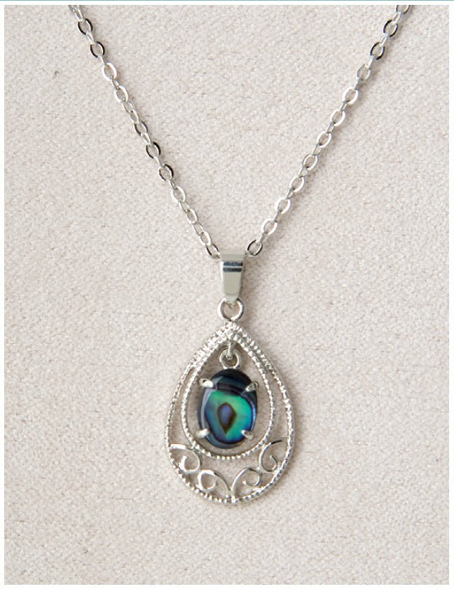 This exquisite abalone necklace captures the timeless allure of vintage craftsmanship. The Wild Pearle design showcases the natural iridescence of abalone shell, with its signature play of blues, greens, and purples that shift beautifully in light. Suspended from a refined chain, this piece combines organic elegance with sophisticated styling. Perfect for those who appreciate authentic vintage aesthetics and the subtle luxury of natural materials, this necklace adds understated glamour to any collection.