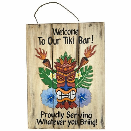 Wood slat Tiki Bar now Serving sign 15.75" x 12"